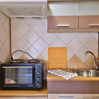 Lady luck struck again and Fotini Studios greeted me with this beautiful sight. Enjoyed a quick dive in the pool and checked in. For this trip, I chose the Premium Studio. It seemed to have everything I needed: a private deck next to the pool, a modern shower bathroom, a fully equipped kitchen, WiFi, and A/C not to mention 2 twin beds that looked very comfortable (and actually they were).